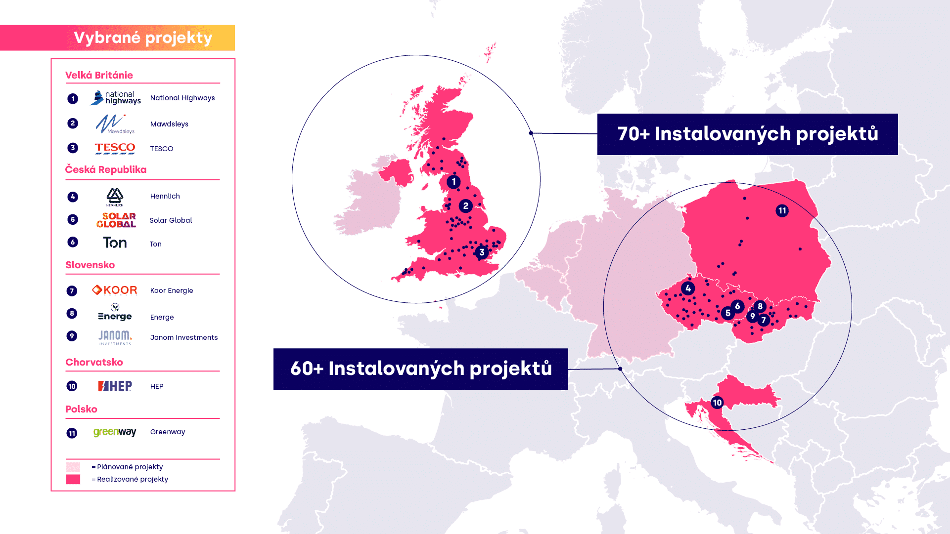 Naše působnost se rychle zvětšuje. Realizovali jsme komerční projekty v pěti zemích a v současné době připravujeme dalších sedm projektů.